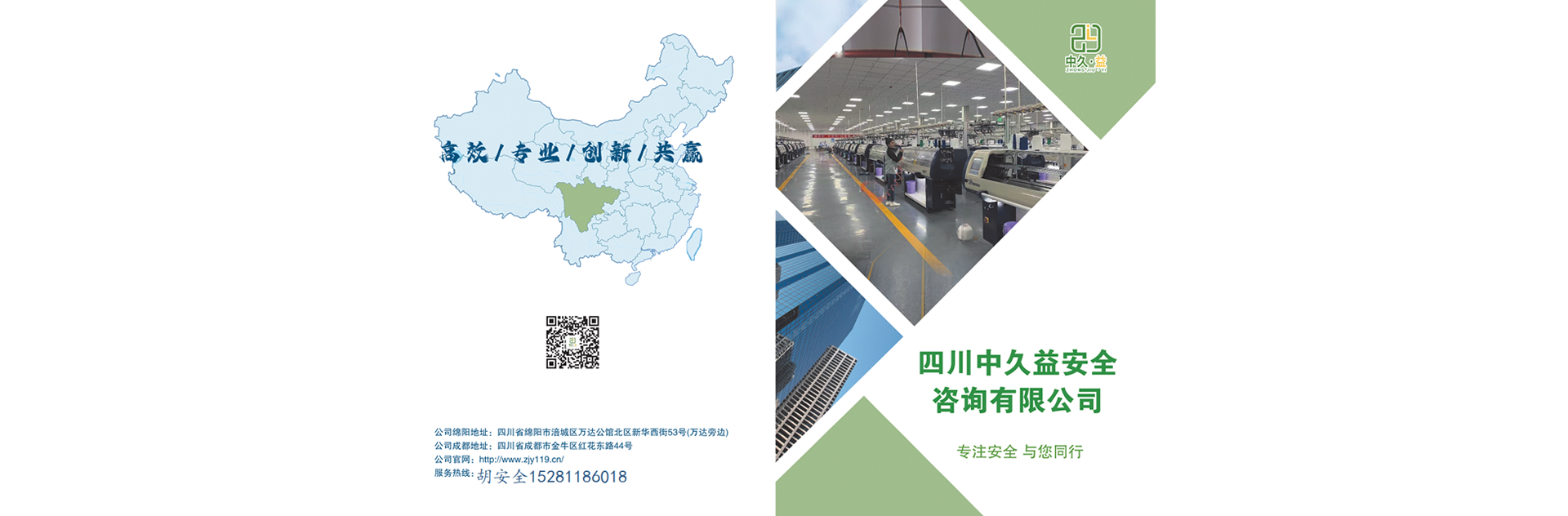 中久.益总部设在享有“天府之国”美誉的成都。在绵阳设有独立经营机构。公司专业技术实力雄厚、团队强大,以高质量咨询服务,助推安全可持续发展。服务众多企业、事业单位;均被单位或应急管理部门认可并推广。